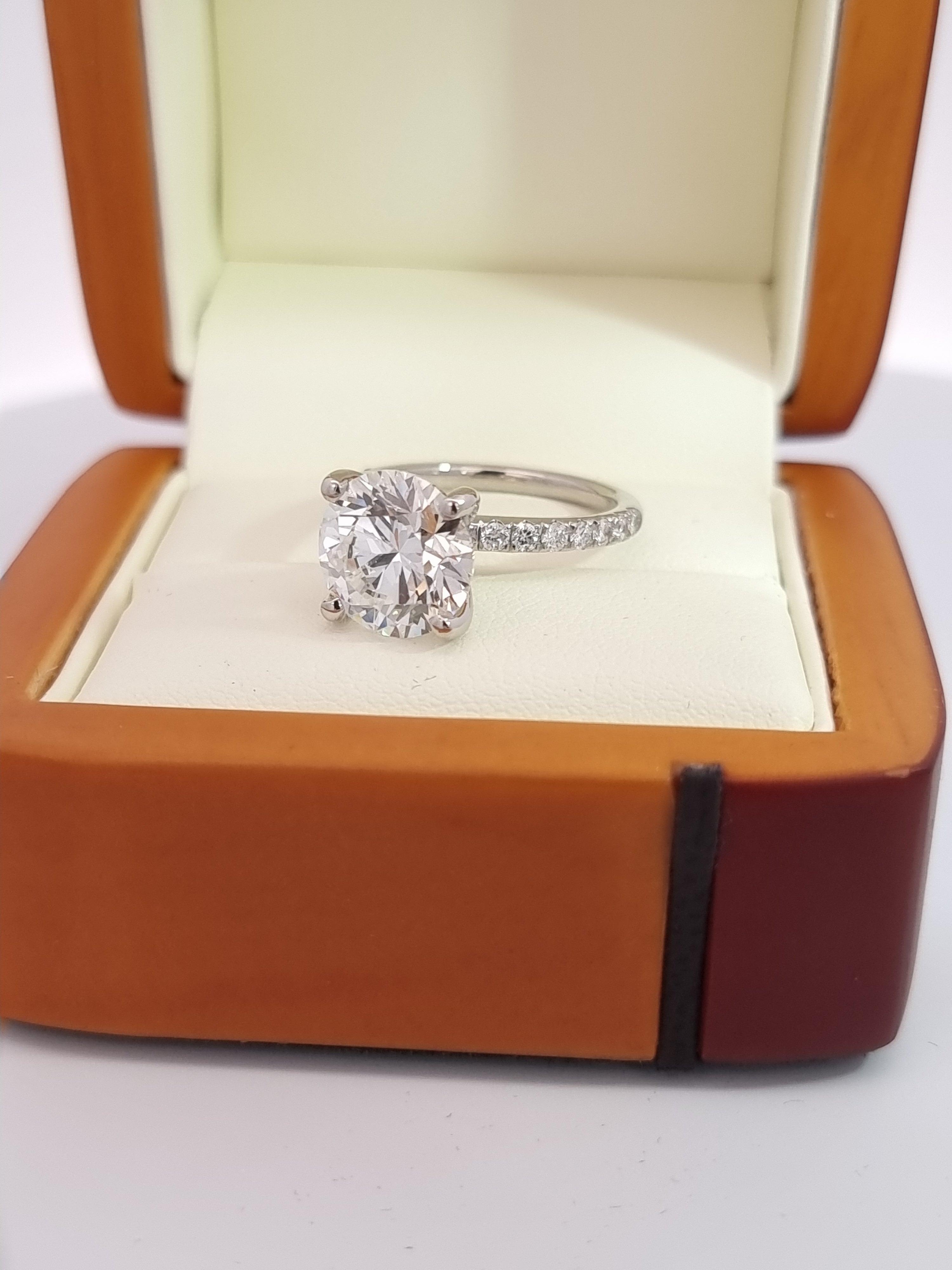 D Colour, 2.80 Carat, Round Cut LG Diamond & 18K WG Engagement Ring