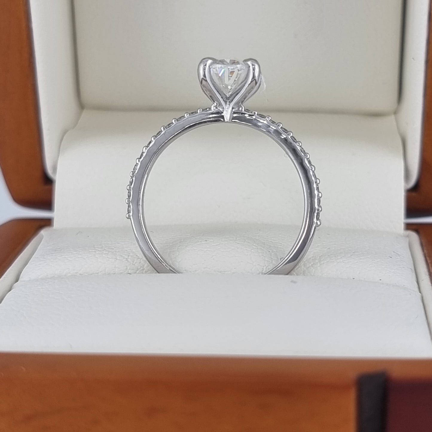 Price includes (where applicable) lab grown side diamonds (superior, F/VS quality). Does not include centre diamond. When set with centre diamond, also includes original diamond certificate (e.g. IGI/GIA) and Certificate of Authenticity. We can modify this style for any diamond shape, or custom design your dream enagement ring setting.