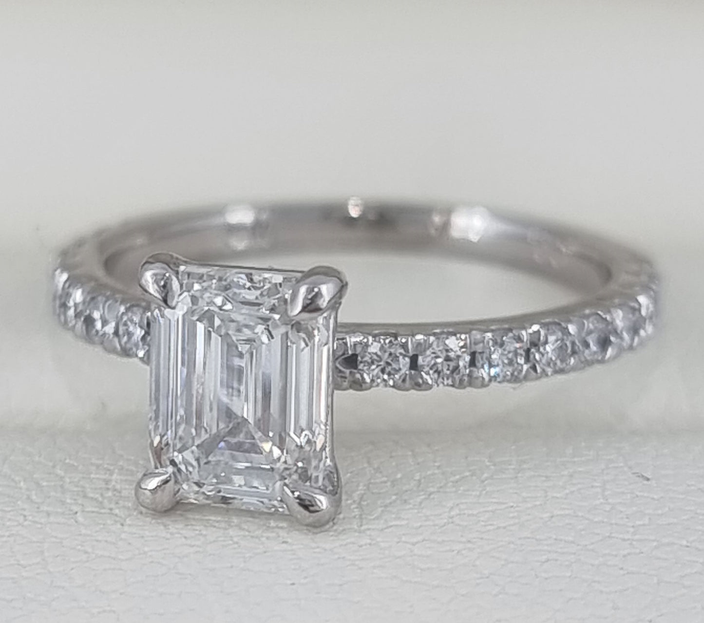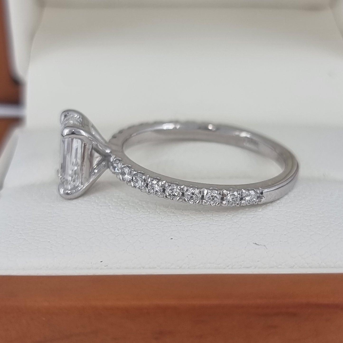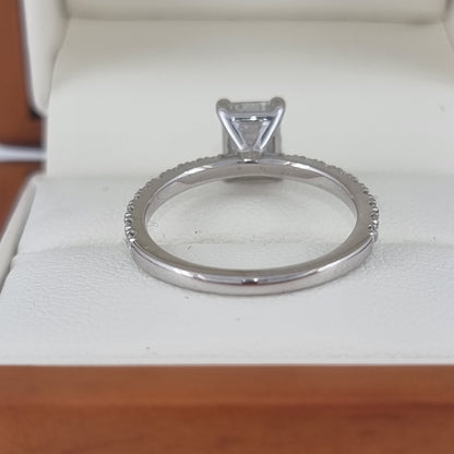Price includes (where applicable) lab grown side diamonds (superior, F/VS quality). Does not include centre diamond. When set with centre diamond, also includes original diamond certificate (e.g. IGI/GIA) and Certificate of Authenticity. We can modify this style for any diamond shape, or custom design your dream enagement ring setting.
