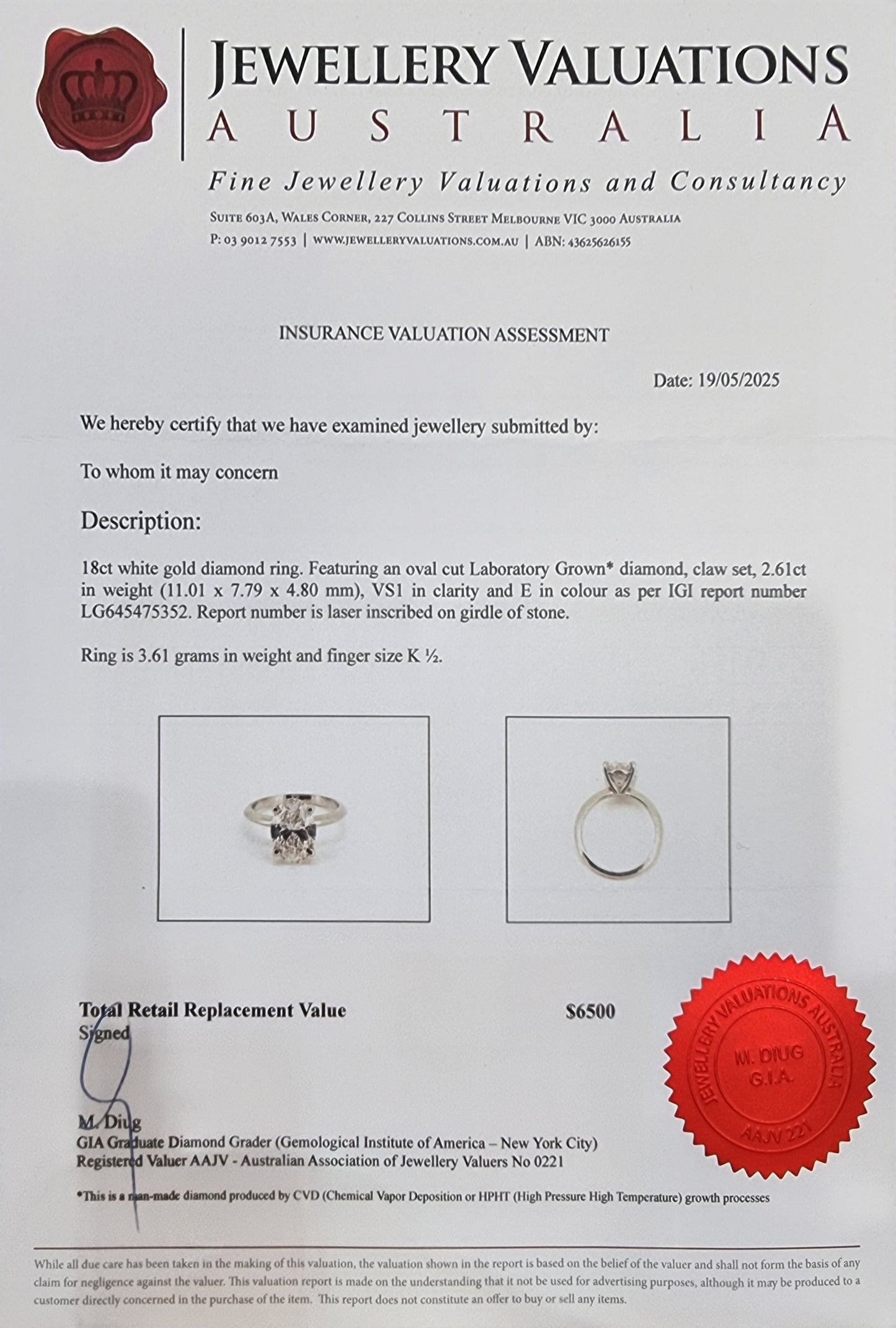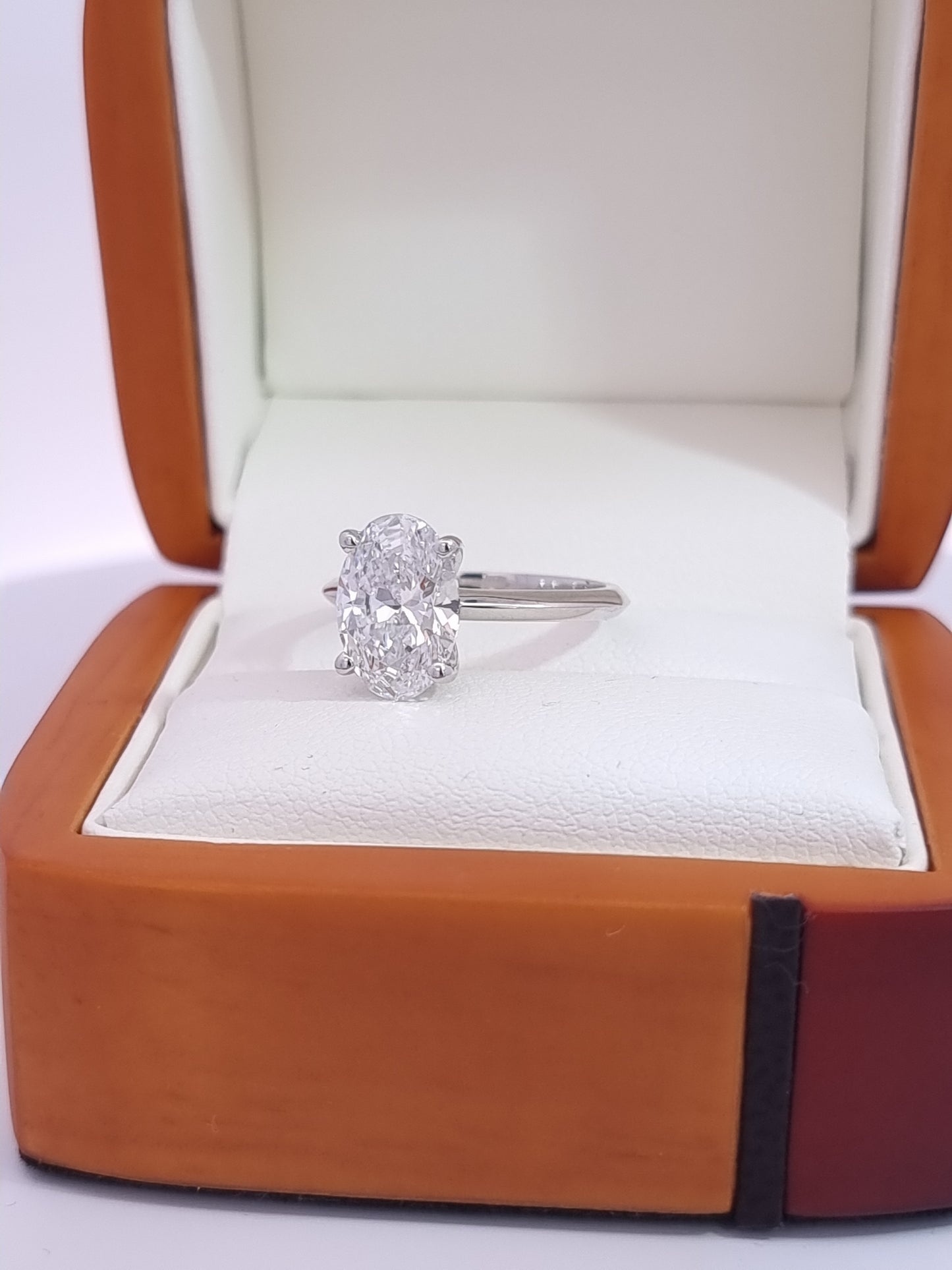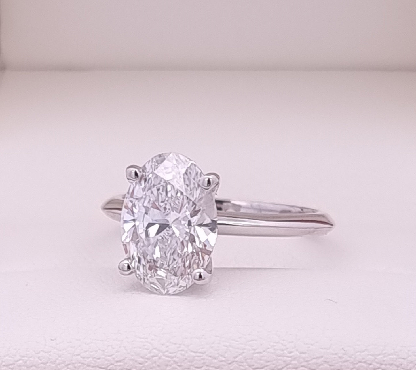 2.61 Carat Oval Cut, LG Diamond Engagement Ring - 18K Knife Edge Setting