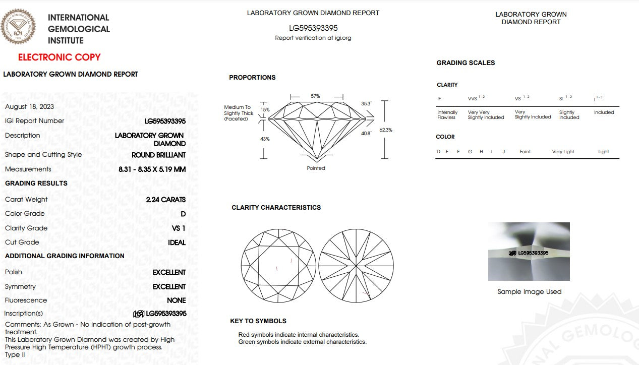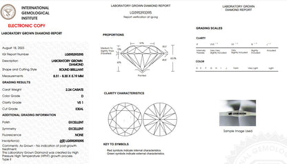 IGI, D Colour & VS1 Clarity, 2.24 Carat Round Cut Diamond Engagement Ring! Lab Grown!