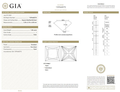 GIA 1.00 Carat Princess Cut Diamond Engagement Ring - $18K Value!