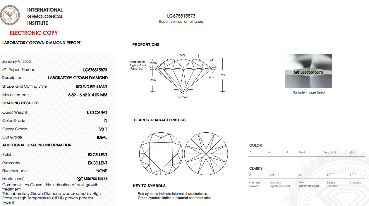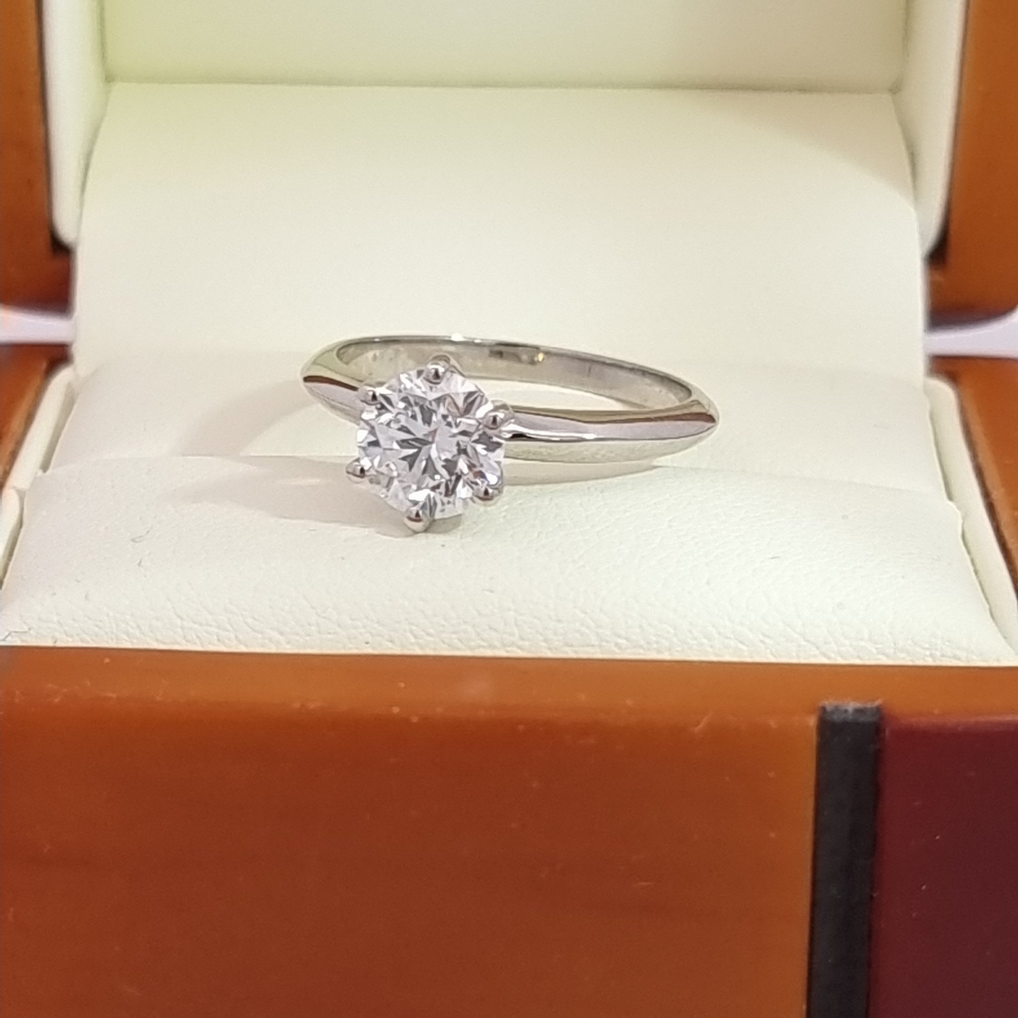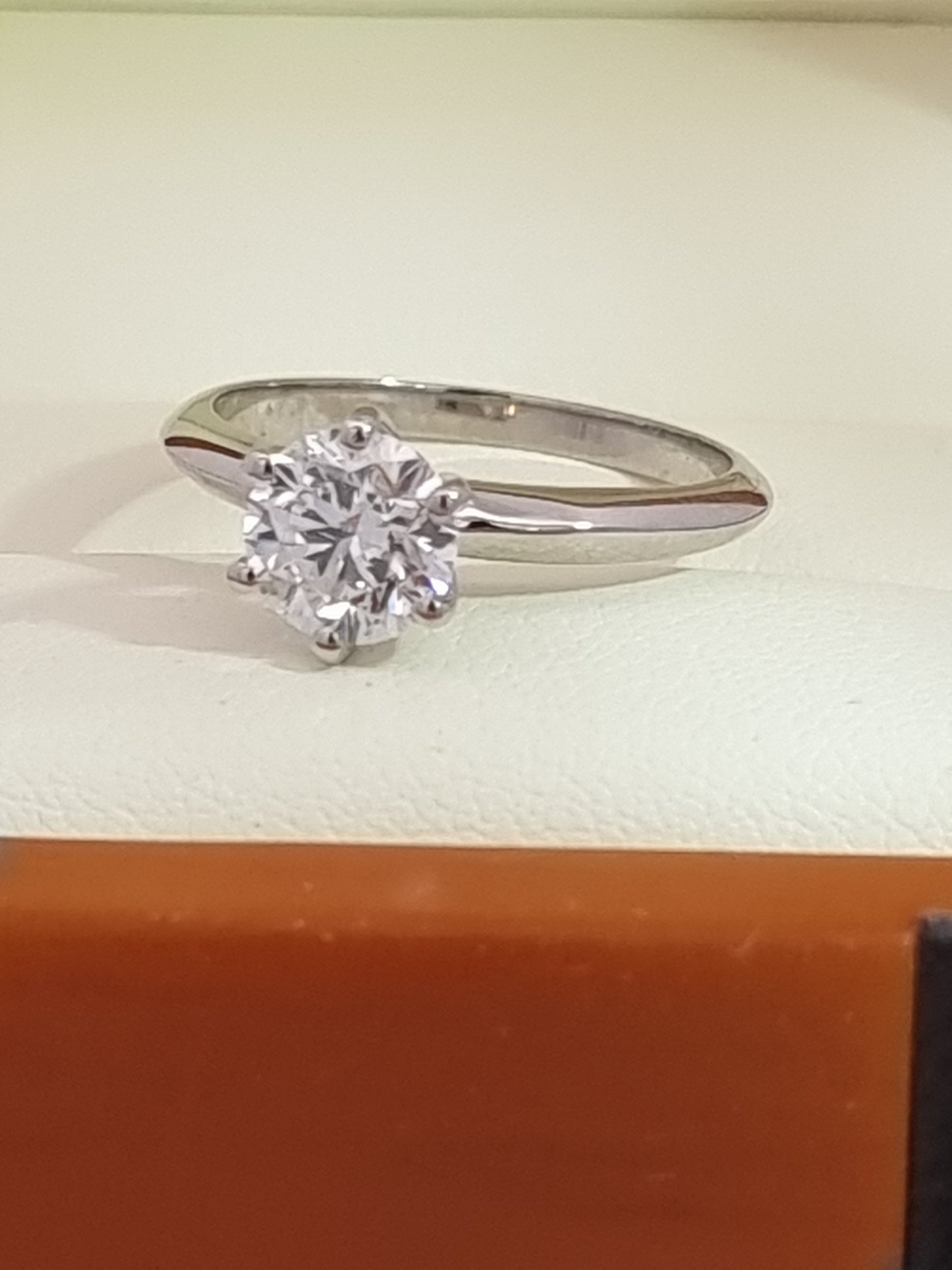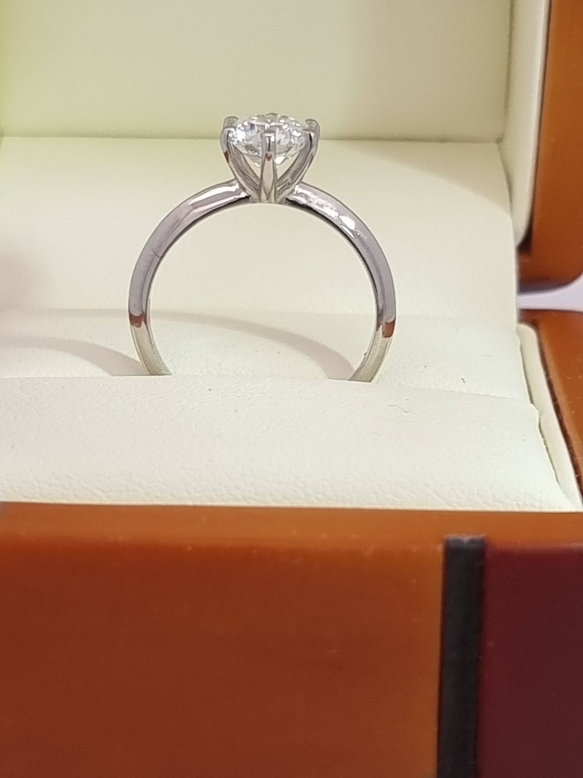 A Stunning “Knife Edge” setting in the style of the world’s most famous engagement ring! Dazzling “D” Colour, Ideal Cut lab grown diamond of 1.10 Carats. 100% Eye Clean!