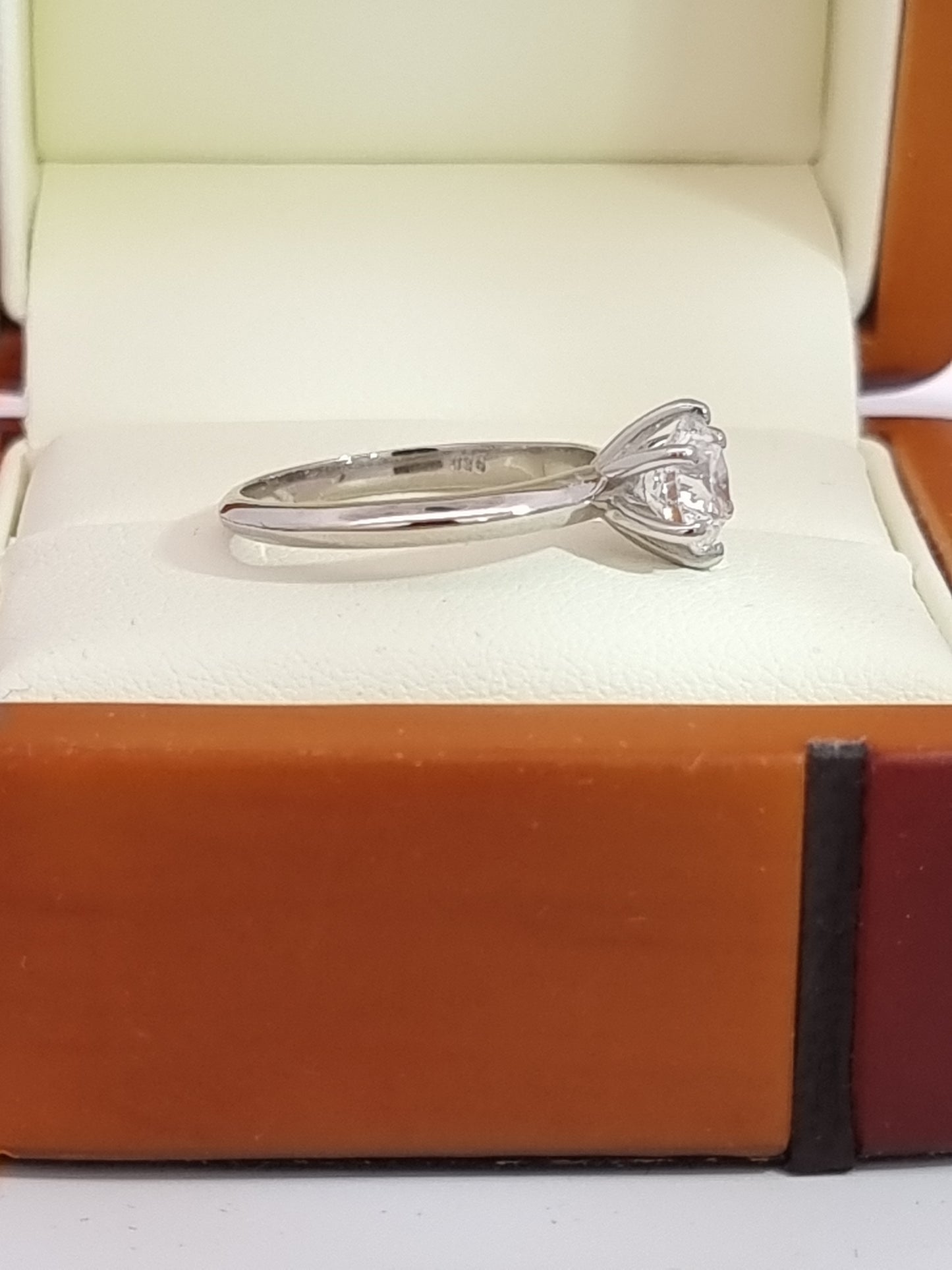 * Brand New. High quality setting in Platinum (size: “L1/2”). Readily Resizable.