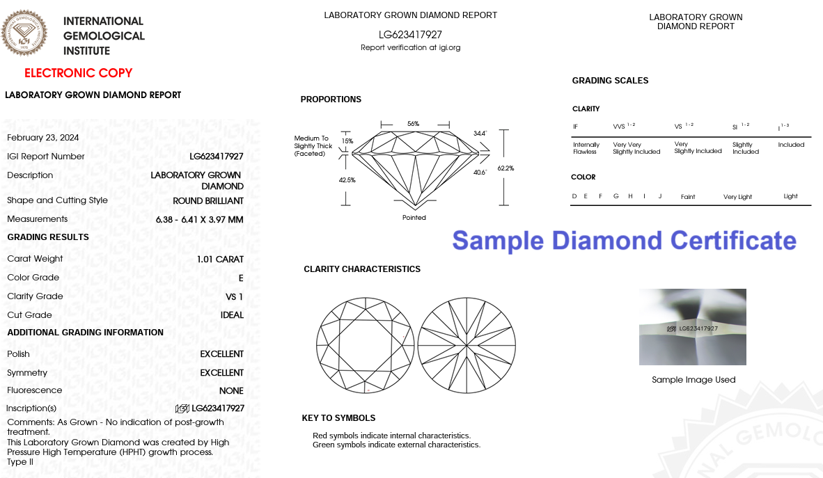 * Mesmerizing, IGI Certified Ideal Cut, E Colour & VS1 Clarity Lab Grown Diamonds